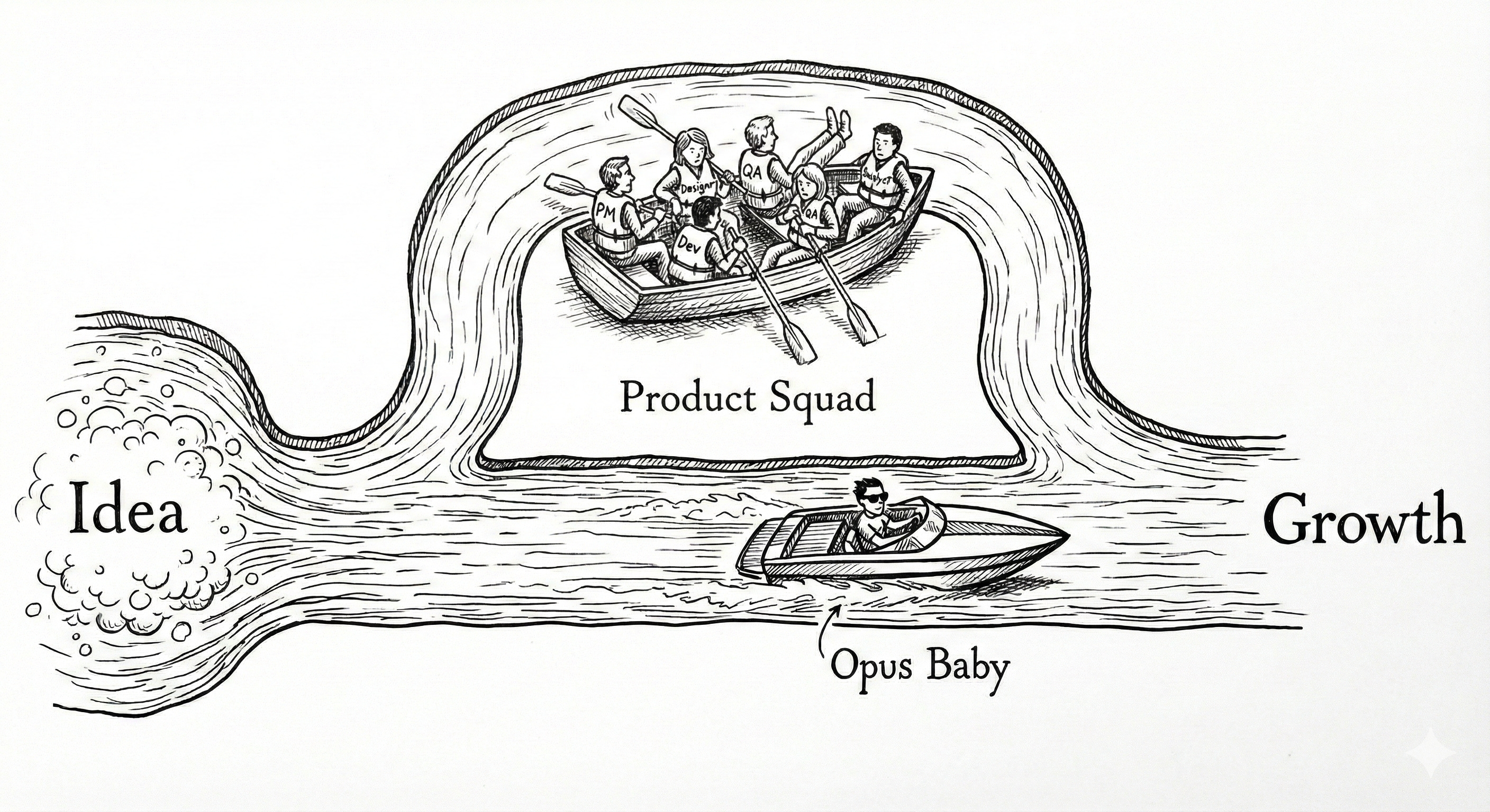 Everyone in that funnel was doing their job well. Tech resource always was limited. The PM usually had good reasons to cut back on an idea - if they didn’t, it would never see the light of day. And ‘CEO bombs’ - random ideas from the founder - can be catastrophic and must often be managed out of existence for the sake of focus. But historically, the inventions of highest quality and inventiveness came from single minds, or tightly-connected pairs. The PM-Designer-Dev team squad will soon become the oxbow lake of organisational design. Suddenly, the productivity is not blocked by the devs. The excuses are gone. Technical debt will grow, but agents can crush technical debt too, especially on startup-scale codebases. Once some technical debt is cleared and CIOs and CTOs let Claude Code and Cursor rip, momentum or lack thereof will now only have one blocker: indecision.