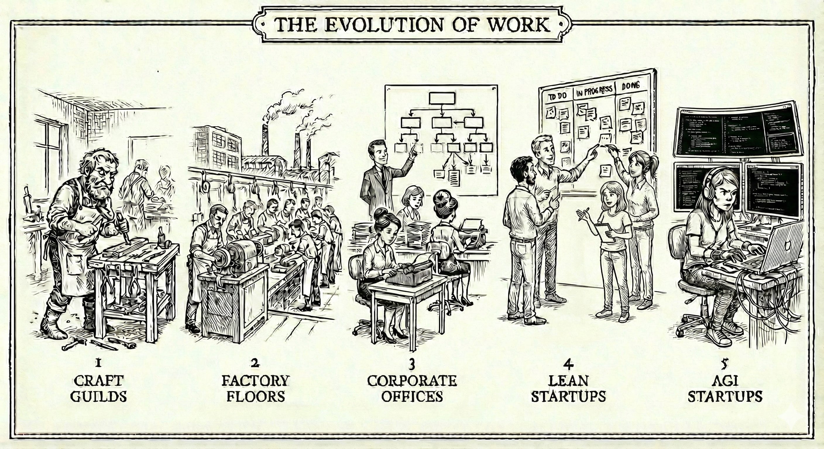 Now think about how hard this genetic shift looks for a large organisation or enterprise. Maybe you work for one, and feel it. In every large enterprise there will be individuals automating away their work to spend more time on pleasure or the brave few automating work and then showcasing that internally to drive change. There will also be plentiful execs who put “AI leader” on their LinkedIn, but don’t drive the fundamental change needed to adapt. And it’s hard to do. The sheer anti-gravitational force required to transition a large enterprise into truly AGI-native work, the massive changes in the workforce, re-skilling, redundancies, and hiring of a new generation of talent who have built their skills AI-first, will be too shocking for most to endure.